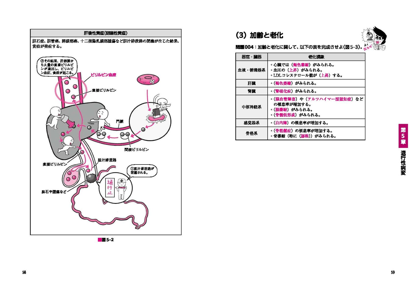 炎症、腫瘍、免疫などの重要テーマを、イラストを通じて直感的に覚えられるように設計されており、試験に頻出するポイントを厳選してコンパクトにまとめています。