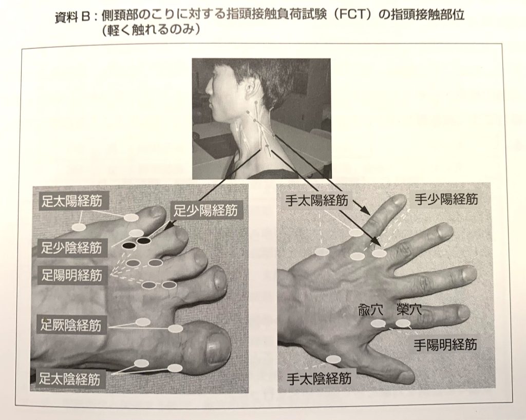 患者に苦痛を与えることなく、異常経筋及び治療穴を探索する指頭接触負荷試験(FCT:Finger Contact Test)の方法も紹介。