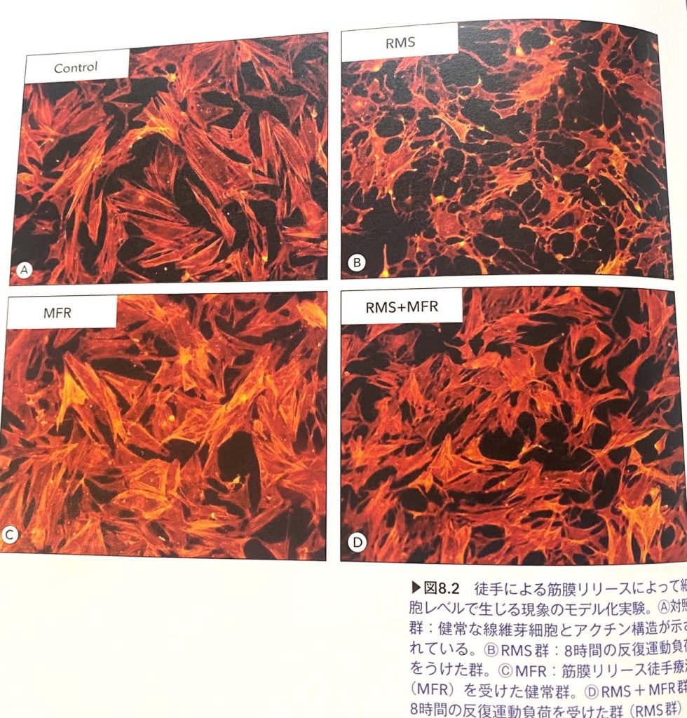 また、筋膜リリース施術においては、施術の前後変化を示すモデル写真や実験画像も掲載。