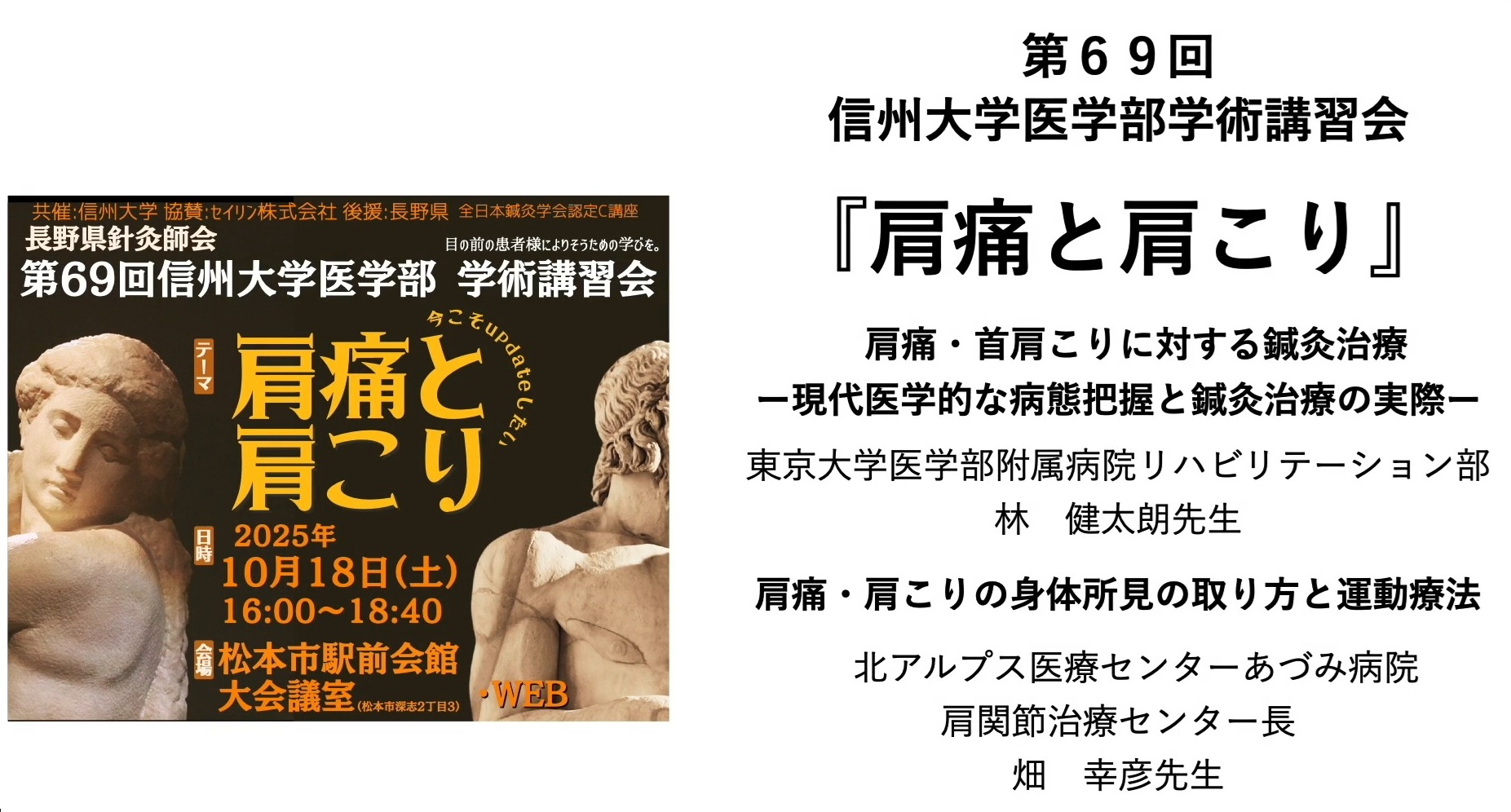 「肩痛と肩こり」第69回 信州大学医学部学術講習会レポート 一般社団法人長野県針灸師会主催、信州大学共催