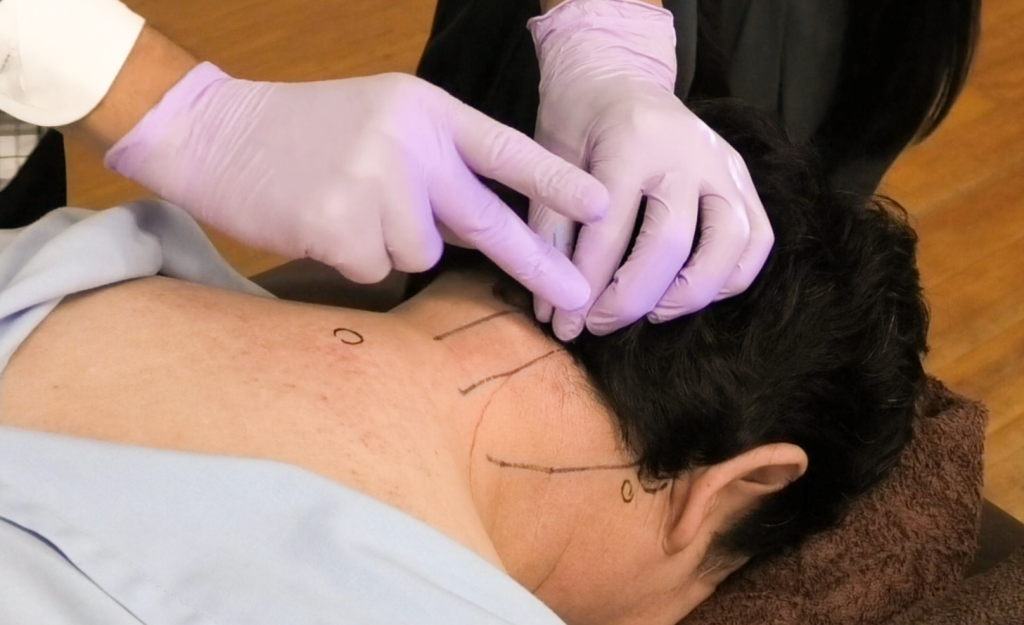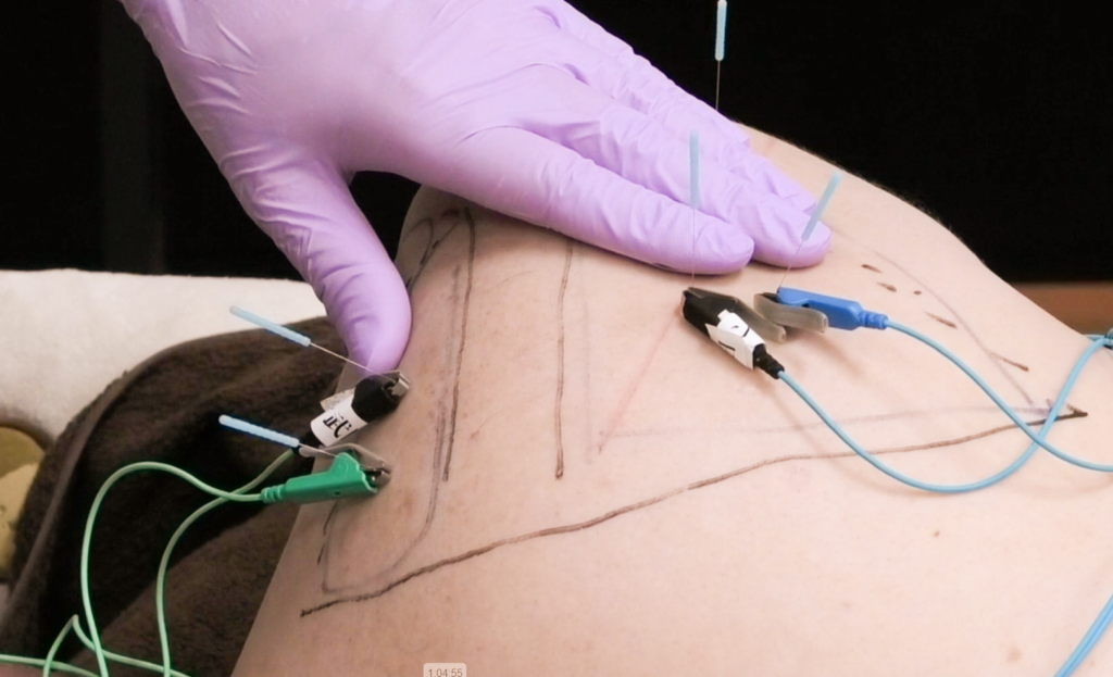 実技供覧で刺鍼、鍼通電を解説した。
