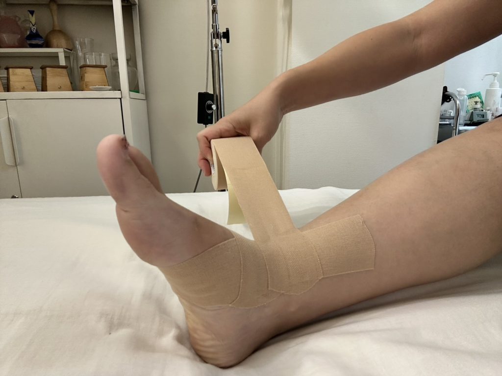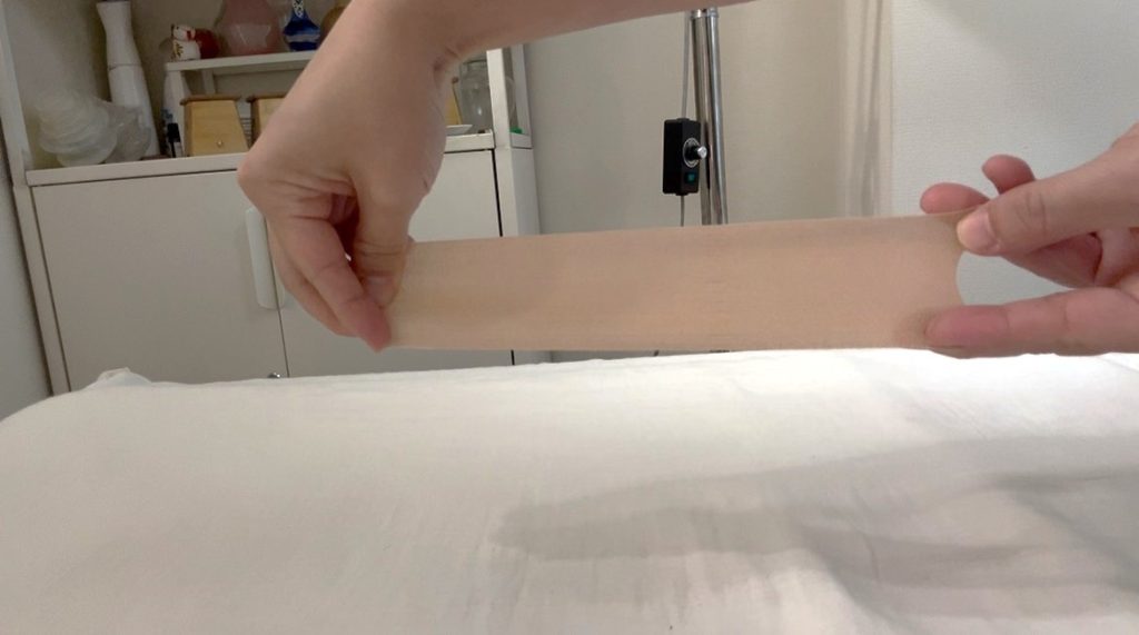 まず特筆すべきはその伸縮性。筋肉や関節の自然な動きにしっかりと追従し、サポートしながらも可動域を妨げません。施術後の安静だけでなく、動作時の負担軽減にも有効で、アクティブな患者にも安心して使用できます。